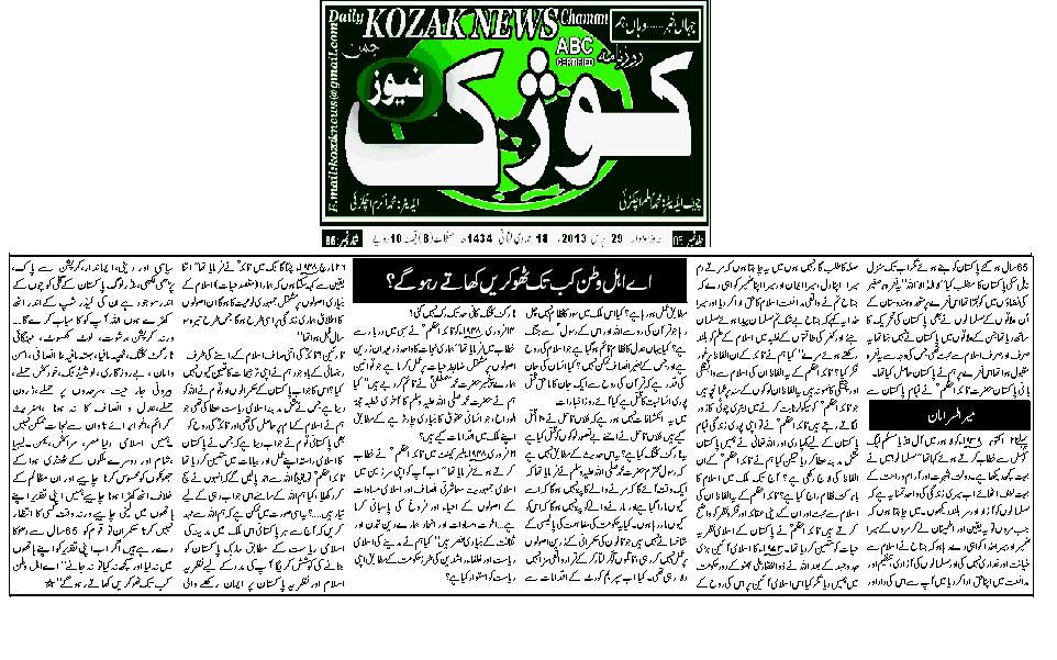 نظریہ پاکستان اور ہمارے سپہ سالار کا بیان/پاکستان اپ ڈیٹ/تلاگنگ ٹائمز/کوژک/29 اپریل 2013